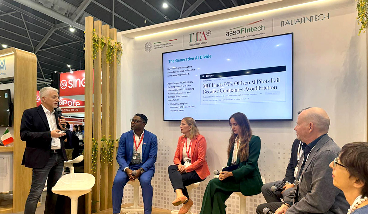 On 13 November, ItaliaFintech Vice President Massimo Ruffolo moderated the panel “Bridging the GenAI Divide: Delivering Real Value Through Responsible Agentic AI in Financial Services”, which addressed the challenges and opportunities of integrating AI into the financial sector, with a particular focus on the potential of Agentic AI.